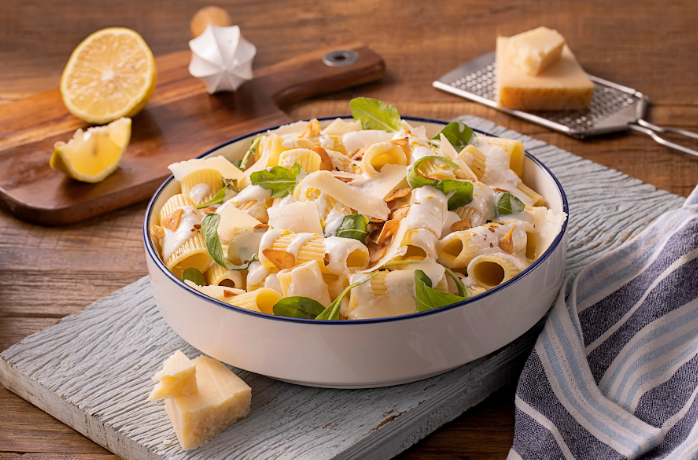 Veja como preparar uma deliciosa salada de rigatoni com creme de ricota ao limone e lascas de Grana Padano para um dia de verão!