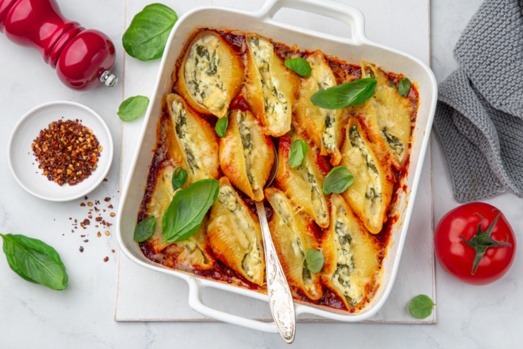 Confira a receita completa de Conchiglione Recheado com Creme de Ricota e Espinafre