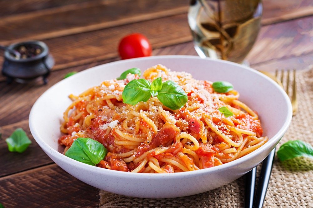 Um dos molhos de macarrão mais tradicionais também foi criado em Roma. A Amatriciana é feita à base de tomate, guanciale e queijo (tradicionalmente o Pecorino, podendo ser substituído pelo Parmigiano Reggiano para um sabor intenso, mas menos salgado). Ideal para comer em almoços e jantares de dias frios, o molho Amatriciana se destaca por sua consistência mais encorpada, com pequenos pedaços de guanciale. O sabor final combina o ácido do tomate com o salgado do queijo e o defumado do guanciale: ou seja, é um prato altamente rico e marcante!
