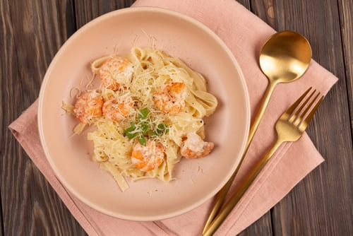 Para quem busca uma receita simples, esse preparo com camarão é a pedida perfeita! Preparar um delicioso macarrão ao molho branco é sempre uma boa ideia quando o assunto é preparar uma refeição simples. Mas, se a ocasião pede algo mais sofisticado, adicionar camarões e finalizar o prato com Queijo Parmesão Ralado Galbani traz um toque italiano autêntico e eleva o nível da receita!