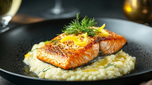 Essa opção é leve e refrescante! O risoto de limão siciliano é uma das versões mais clássicas do tradicional risoto italiano e, servido ao lado do filé de salmão grelhado, o prato fica muito mais suculento e recheado. Para um toque italiano autêntico, o Queijo Parmesão fracionado Galbani entra na etapa do cozimento do risoto, trazendo cremosidade e um sabor amanteigado!