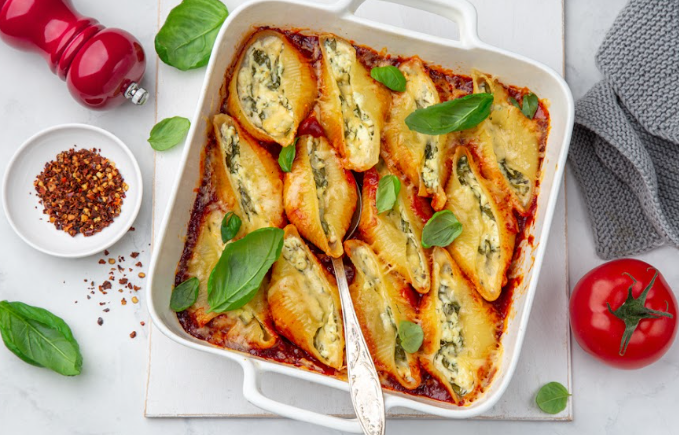 Clique e confira a receita completa de Conchiglione recheado com creme de ricota e espinafre!
