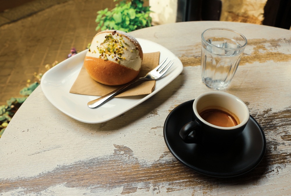 Para o café da manhã ou lanche, o Maritozzo é a estrela. É um pão doce muito fofinho, cortado ao meio e generosamente recheado com chantilly fresco (panna). É a definição de felicidade em forma de doce.