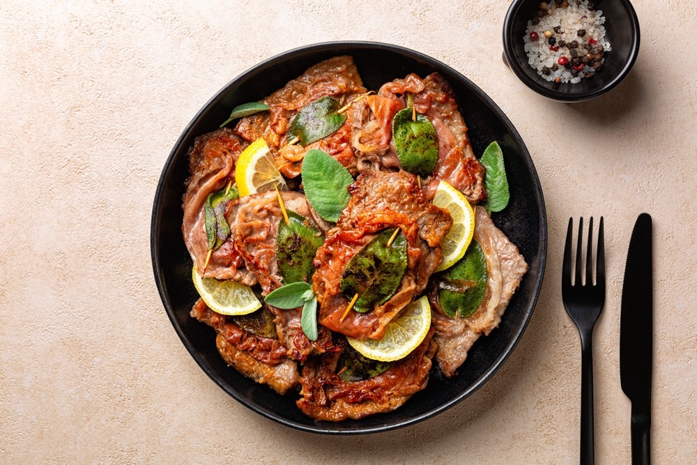 O nome significa literalmente “pula na boca”. São fatias finas de vitela cobertas com presunto cru e uma folha de sálvia, cozidas no vinho branco e manteiga. É um prato leve e extremamente aromático.