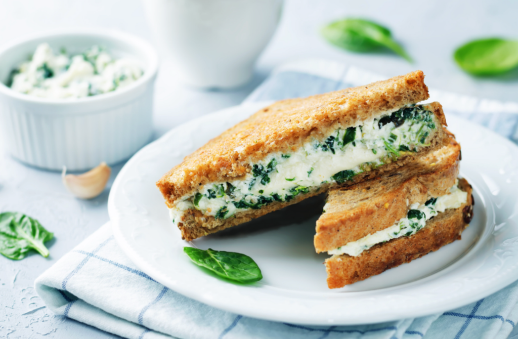 O recheio de espinafre com creme de ricota também funciona muito bem em sanduíches naturais. Essa versão mistura o Creme de Ricota Light Galbani com espinafre refogado e frango desfiado para servir um lanche funcional e encorpada – ideal para um café da manhã reforçado ou lanche da tarde!