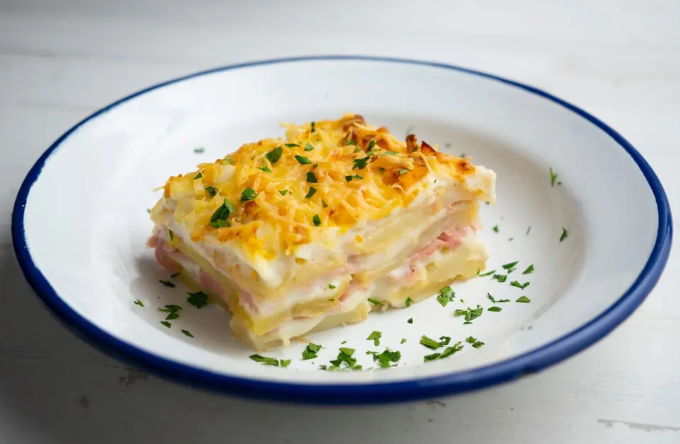 4. Lasanha com várias camadas de presunto e queijo