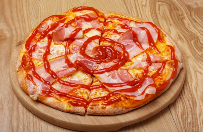 3. Pizza carregada de recheio e ketchup