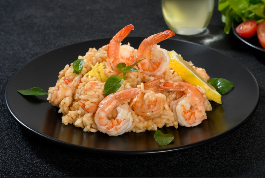 A combinação de camarão com laranja cria um risoto sofisticado e aromático, com equilíbrio entre acidez e doçura. Para manter a cremosidade sem interferir nos sabores delicados, o Parmesão Ralado Galbani é a melhor escolha. Ele finaliza o prato de forma suave, valorizando os ingredientes principais e deixando a textura impecável.